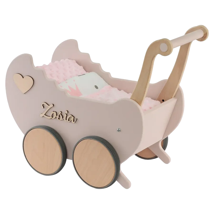La poussette pour poupées est un jouet élégant et fonctionnel, alliant esthétique, durabilité et plaisir. Sa teinte rose subtile associée au bois naturel en fait un accessoire parfait pour la chambre de toute petite passionnée de poupées.